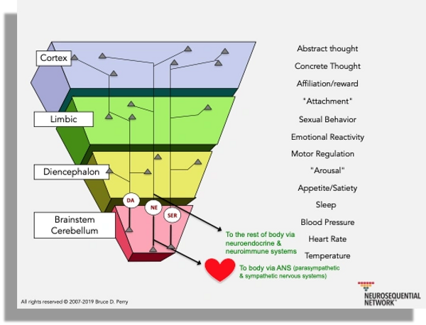 The Neurosequential Model of Therapeutics (NMT) is a developmentally sensitive, neurobiology informed approach to clinical problem solving developed by Dr. Bruce Perry. NMT is not a specific therapeutic technique or intervention. It is an approach that integrates core principles of neurodevelopment and traumatology to inform work with children, families, and the communities in which they live. The Neurosequential Approach has three components – training/capacity building, assessment, and then, specific recommendations for the selection and sequencing of therapeutic, educational, and enrichment activities that match the needs and strengths of the individual.